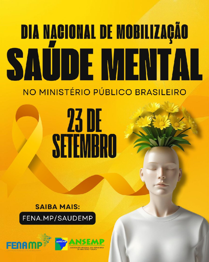 A FENAMP e a ANSEMP vão promover, no dia 23 de setembro, o Dia Nacional de Mobilização por Saúde Mental no Ministério Público Brasileiro. A data foi escolhida porque deve ser o dia de homologação da resolução do Conselho Nacional do Ministério Público (CNMP) que estabelece diretrizes para as Comissões de Prevenção a Situações de Risco à Saúde Mental e para sua atuação no combate à violência, aos assédios sexual e moral e à discriminação no âmbito do Ministério Público.