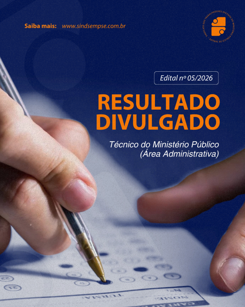 O Ministério Público de Sergipe publicou, nesta terça, dia 24, o Edital nº 05/2026 com os resultados das provas objetivas e discursivas para o cargo de Técnico do Ministério Público – Área Administrativa, dando continuidade às etapas do IV Concurso Público para os serviços auxiliares.