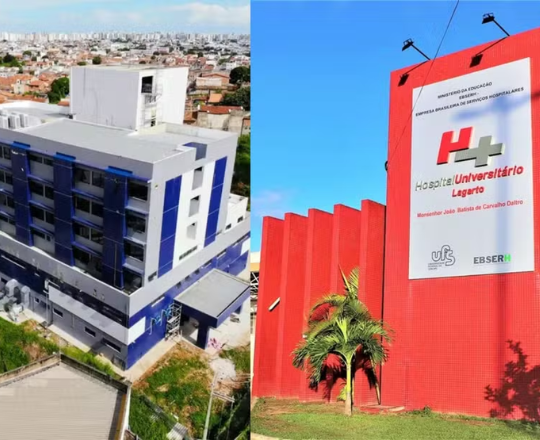 Hospitais universitário de Aracaju e de Lagarto. — Foto: Governo Federal e Marcelo Sandes/HUL/Arquivo